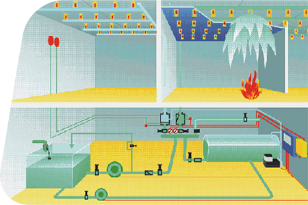UYGULAMA VE MONTAJ a-Köpüklü sprinkler b-Depolama tank içi köpüklü söndürme c- Dış saha köpüklü söndürme olarak tanımlanabilir. - Uçak hangarları - Petro kimya tesisleri - Limanlar ve marinalar - Yakıt aktarma istasyonları - Özel depo alanları | ![]() |